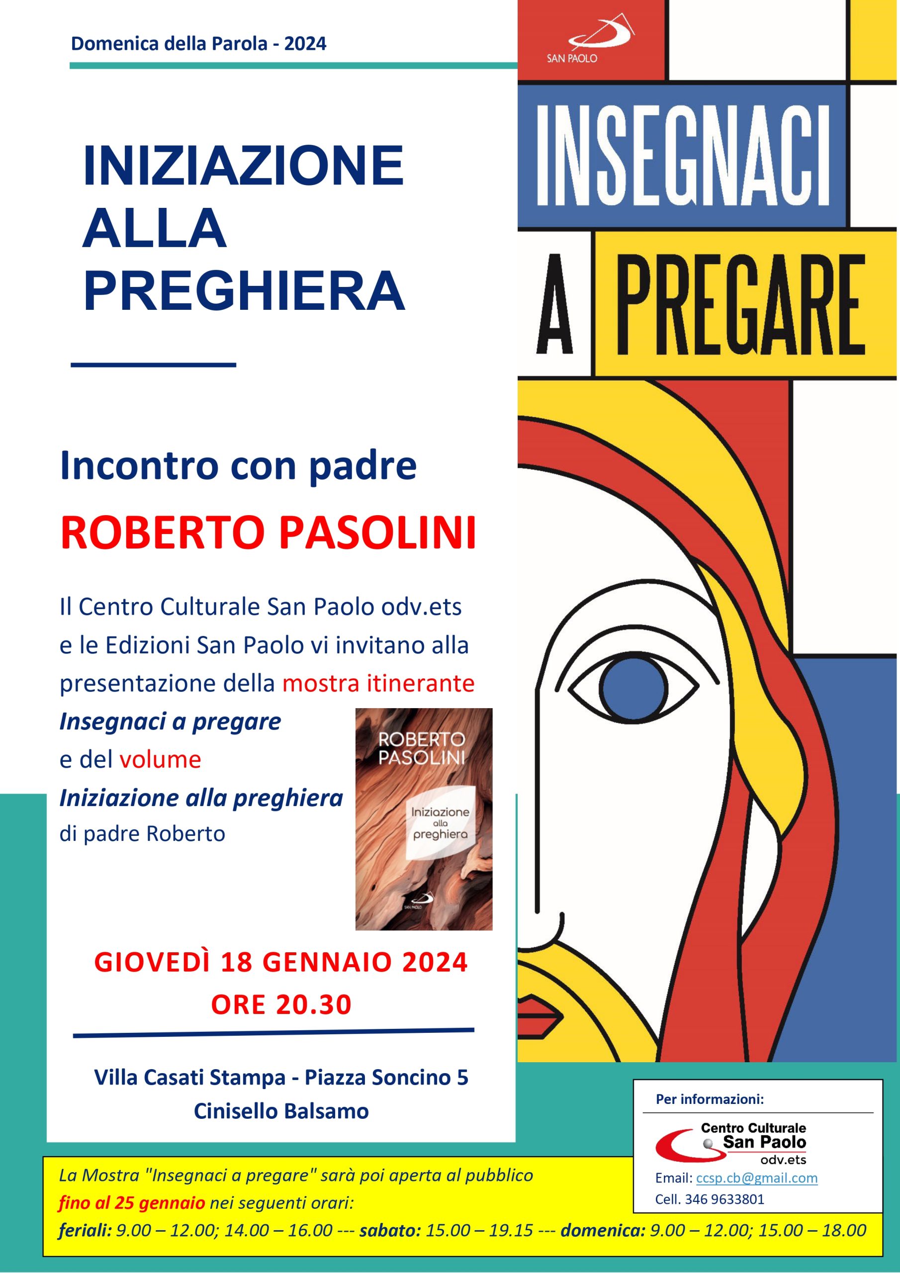 Il Centro Culturale San Paolo odv.ets e le Edizioni San Paolo presentano la mostra itinerante “Insegnaci a pregare” e il volume Iniziazione alla preghiera”.