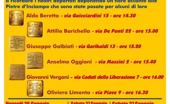 Numerosi sono gli eventi promossi dalla sezione di Cinisello Balsamo dell’ANPI in occasione del Giorno della Memoria. Riportiamo le locandine dei vari appuntamenti.