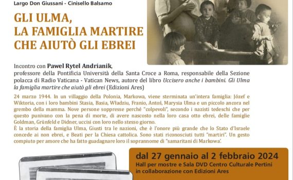 Sabato 27 gennaio in occasione del Giorno della Memoria il Centro Culturale Cara Beltà promuove un incontro con Pawel Rytel Andrianik, autore del libro Uccisero anche i bambini. Gli Ulma, la famiglia martire che aiutò gli ebrei (edizioni Ares, 2023), professore della Pontificia Università della Santa Croce a Roma, responsabile […]
