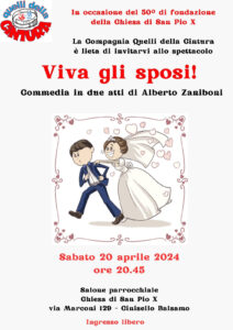 In occasione del 50° di fondazione della Chiesa San Pio X, la compagna quelli della cintura è lieta di invitarvi allo spettacolo: