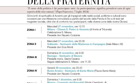ARTIGIANI DI DEMOCRAZIA NEL SEGNO DELLA FRATERNITÀ “Il cuore della politica è far partecipare tutti. La partecipazione significa prendersi cura di ogni aspetto della vita comune.” (Papa Francesco, 7 luglio 2024) Gli incontri di spiritualità di Avvento per gli impegnati nelle realtà sociali, politiche e culturali sono occasioni per una […]