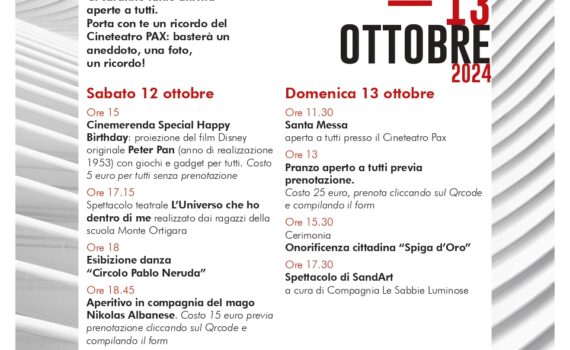 Vieni a festeggiare con noi! Ci saranno tante attività aperte a tutti. Sabato 12 ottobre: Ore 15: Cinemerenda Special Happy Birthday: proiezione del film Disney originale Peter Pan (anno di realizzazione 1953) con giochi e gadget per tutti. Costo 5 euro per tutti senza prenotazione Ore 17.15: Spettacolo teatrale L’Universo […]