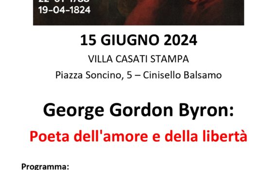 Per commemorare il bicentenario della morte di Lord Byron (22-01-1788/19-04-1824), l’associazione “Amici di villa di Breme”, con il Comune di Cinisello Balsamo e il Centro Culturale San Paolo, organizza una mostra/conferenza in cui si approfondirà la figura di questo grande poeta. Legato all’Italia, che elogiò per la sua “fatale bellezza”, […]