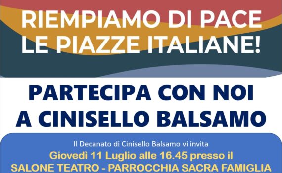 Decanato di Cinisello Balsamo vi invita Giovedi 11 Luglio alle 16.45 presso il SALONE TEATRO – PARROCCHIA SACRA FAMIGLIA, Piazza Sacra Famiglia 1 ad un collegamento in diretta con Kiev per unirci al momento di preghiera interreligiosa per la pace promosso dal Movimento Europeo Azione Nonviolenta.