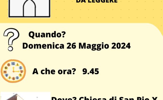 Giovedì 23 alle ore 20.30 proponiamo un momento aperto a tutti per riflettere e sensibilizzare sul tema della disabilità, affinché si avvicini il giorno in cui NON si veda la diversità come un limite o un ostacolo, ma come fonte di arricchimento e crescita. Domenica 26 maggio, alla S. Messa delle […]