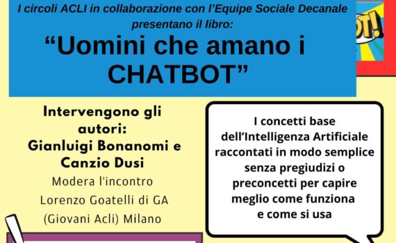 I concetti base dell’Intelligenza Artificiale raccontati in modo semplice senza pregiudizi o preconcetti per capire meglio come funziona e come si usa. Sabato 1 giugno 2024, ore 18:00. Presso Sito Acli, Via Marconi 48 Cinisello Balsamo. Modera l’incontro: Lorenzo Goatelli di GA (Giovani Acli Milano). Intervengono gli autori: Gianluigi Bonanomi […]