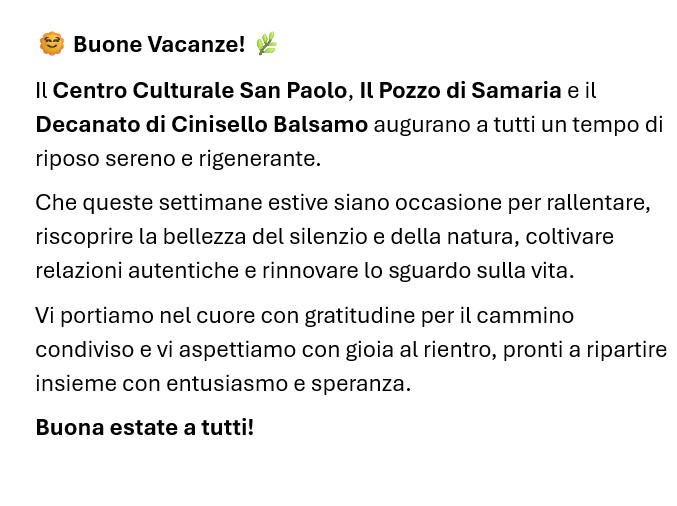 Pubblicato 03/11/2025 “TRA VOI NON SIA COSI” – Settimana dei Centri Culturali Cattolici della Diocesi di Milano – 10-16/11/2025 Condividi questo contenuto