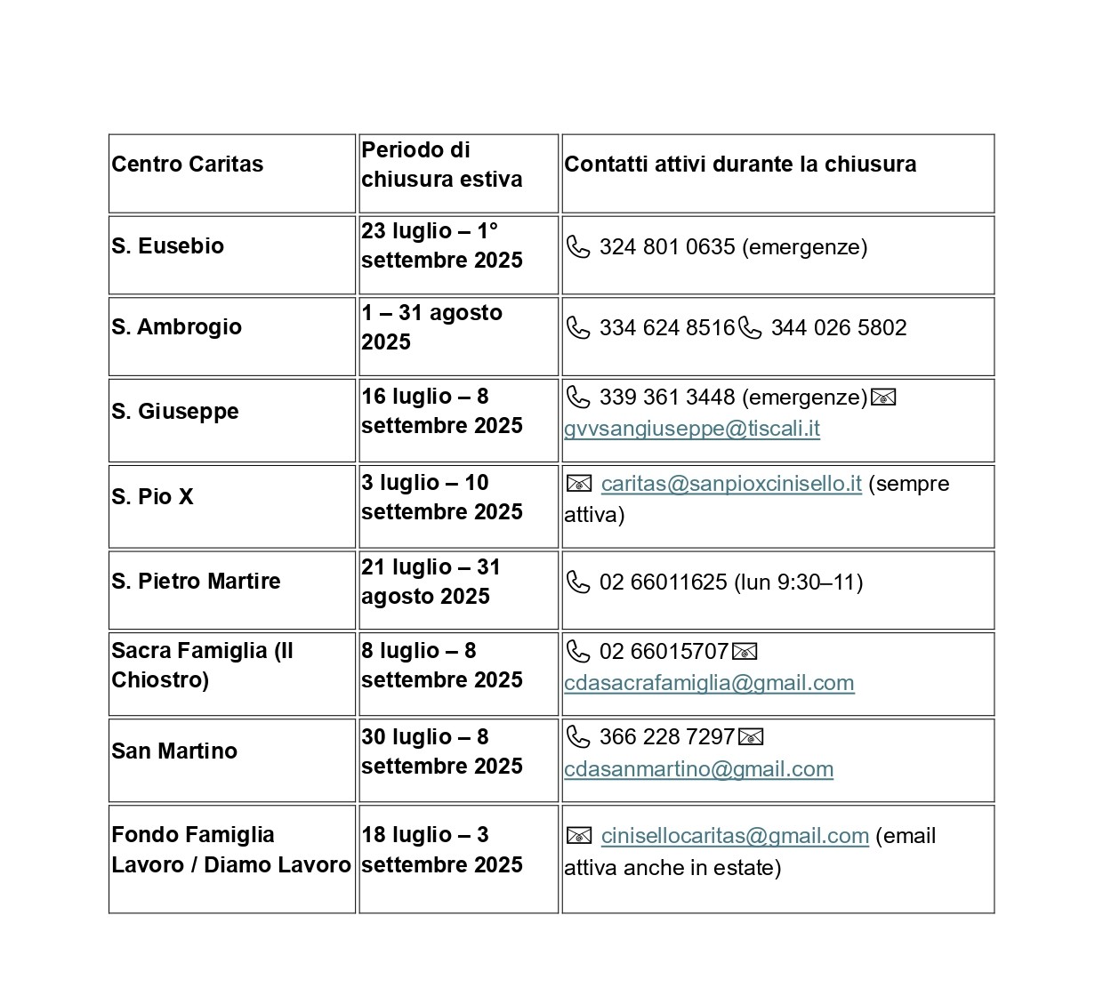 Deca-News CHIUSURA ESTIVA CENTRI ASCOLTO CARITAS 2025 Pubblicato 17/07/2025 Condividi questo contenuto Post Views: 217