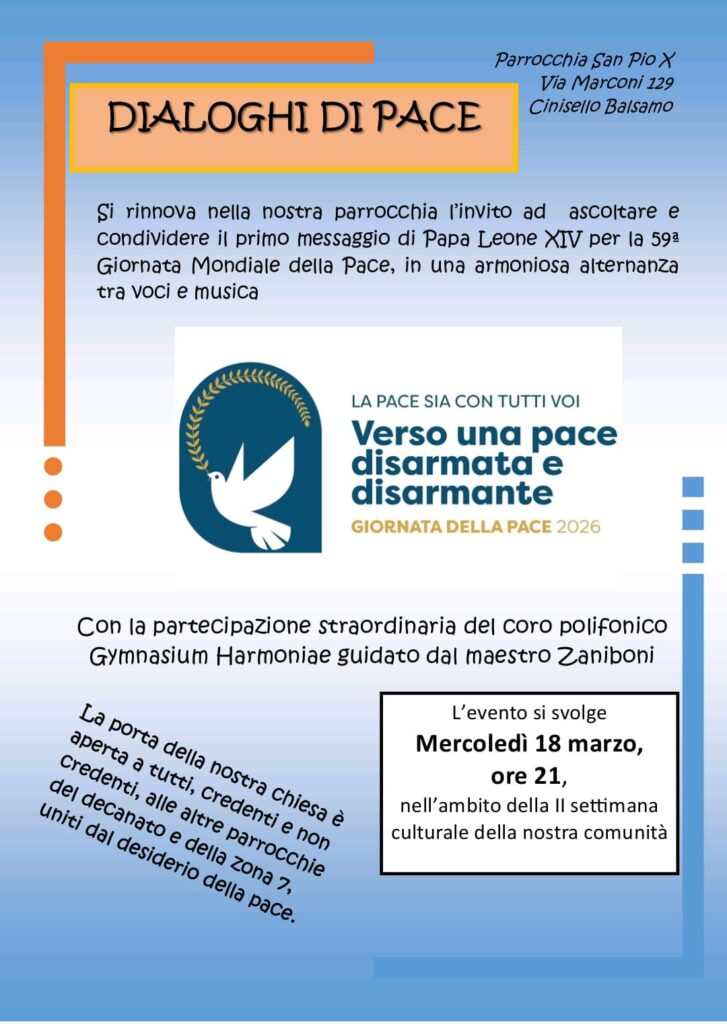 Deca-News DIALOGHI DI PACE – 18/03/2026 Pubblicato 16/01/2026 Condividi questo contenuto Post Views: 160