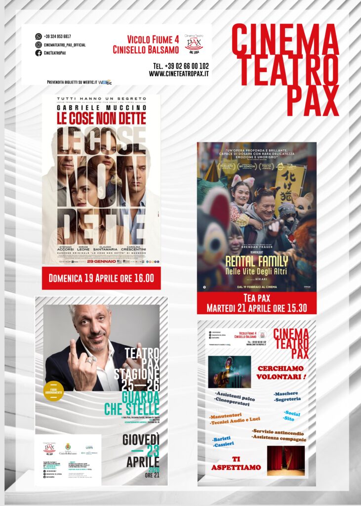 Deca-News CINEMA TEATRO PAX – APPUNTAMENTI APRILE 2026 Pubblicato 10/04/2026 Condividi questo contenuto Post Views: 37